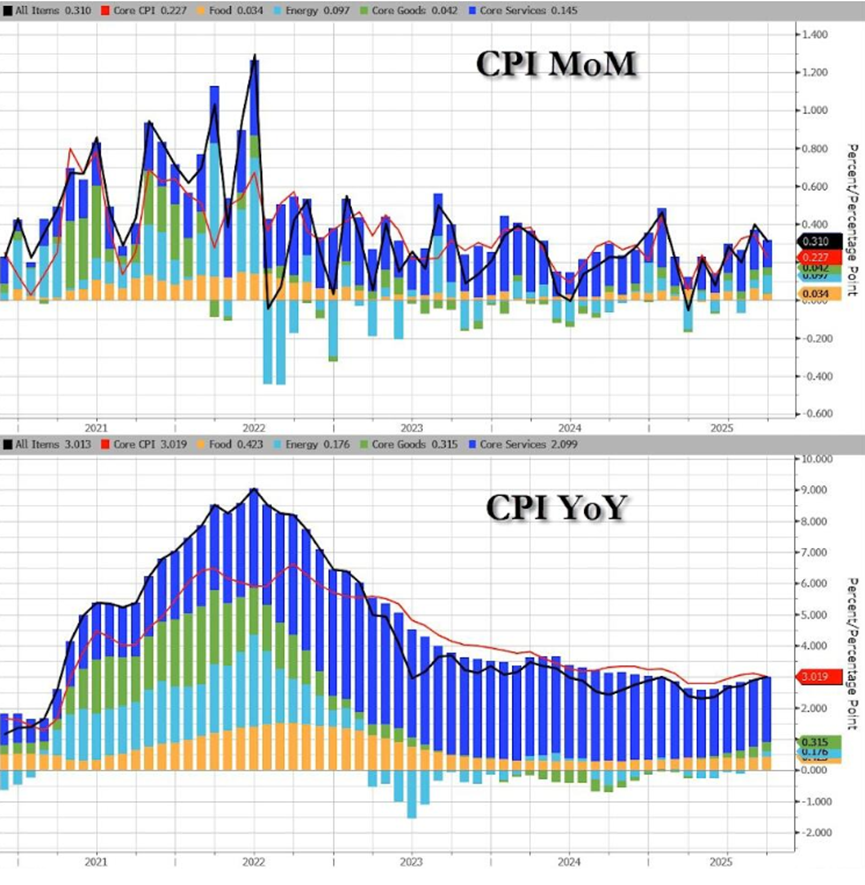 CPI數據好壞參半,9月整體CPI上漲3%低於3.1%的預期,但高於8月2.9%的數值。推動通膨上漲的原因是能源成本的攀升。服裝是本月漲幅最大的商品之一,價格上漲0.7%(大機率是高關稅導致)。住房、機票、娛樂和家具用品的營運成本有所上漲,而機動車保險、二手車和卡車及通訊的成本則有所下降。商品通膨率穩定在1.5%,整體而言,環比數據的普遍降溫以及核心指標持續下行,敘說通膨壓力處於可控狀態。數據上加強了聯準會再次降息的機會,但縮減了減息的幅度。因減息利好的板塊會有機會出現「利好出盡」的情緒而走軟,其中以地產行業最為凸顯,但是銀行板塊就會出現較大利好。