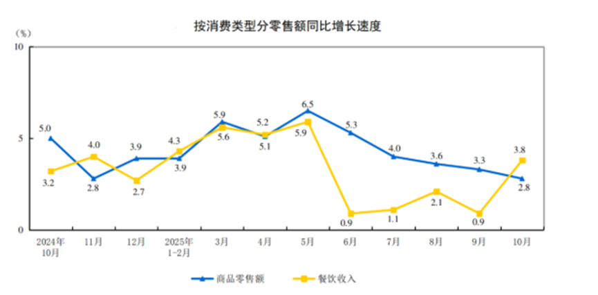 11月14日,國家統計局發布2025年10月份社會消費品零售情形。商品零售額41092億元,較去年成長2.8%;餐飲收入5199億元,成長3.8%。零售業方面,實體商品網上零售額103984億元,佔社會消費品零售總額25.2%;在實體商品網上零售額中,吃穿類有穩定止跌的跡象。以上數據對餐飲業是較好的訊號,但內地餐飲業呈現滾雪球形式明顯。以蜜雪集團(2097.HK)和海底撈(6862.HK)為例,幾乎在市佔率搶佔過程中比較順暢,開起分店的速度也將同業資本較少的公司踢出場外。附加上內地市場平均舖租處於低位,根據2024年數據顯示,一二線城市的商業鋪租價格持續微跌。飲食消費股選取龍頭和市佔率大的公司會比較符合中期投資的標的。
