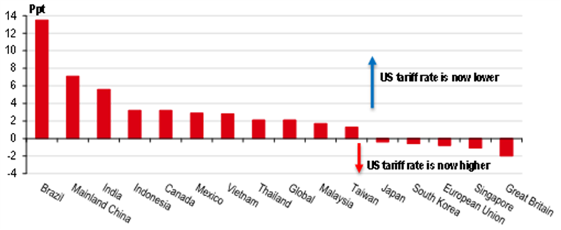 總的來說,至少在短期而言,新的關稅措施對新興經濟體來說是個好消息。尤其對中國大陸,在內部需求仍相對疲軟的情況下,新關稅有助提振出口,對整體經濟和股票市場有積極支持作用。