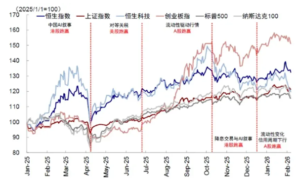港股在2026年開年至今,整體跑輸,較明顯的是恆生科技指數表現不盡人意。元旦後的A股17連陽走勢把恆生指數甩於身後。上證指數從1月中旬開始走降溫行情後,南向資金轉戰港股的新消費、有色金屬和網路板塊。 AI大模型內卷,春節各大出行平台被窗口指導以及阿里巴巴(9988.HK)與騰訊(700.HK)兩家公司的紅包戰,諸多負面因素疊加下,內地與香港市場打破以往「春節派紅包」普漲行情。